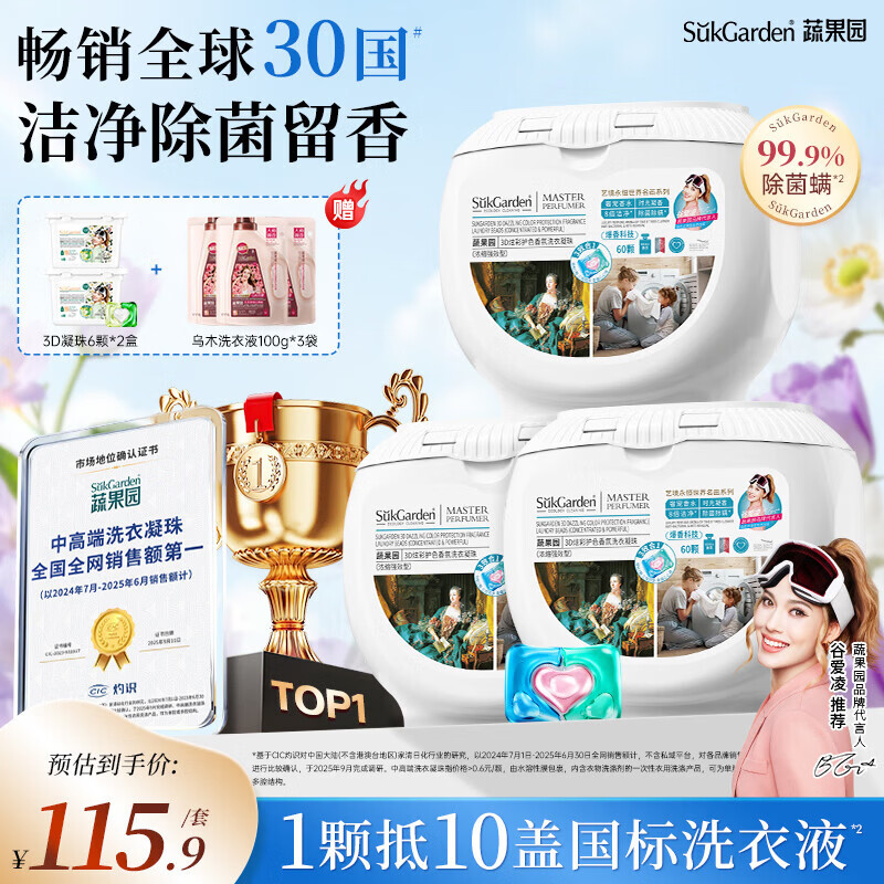 蔬果园洗衣凝珠三合一180颗 除螨除菌浓缩洗衣液留香持久