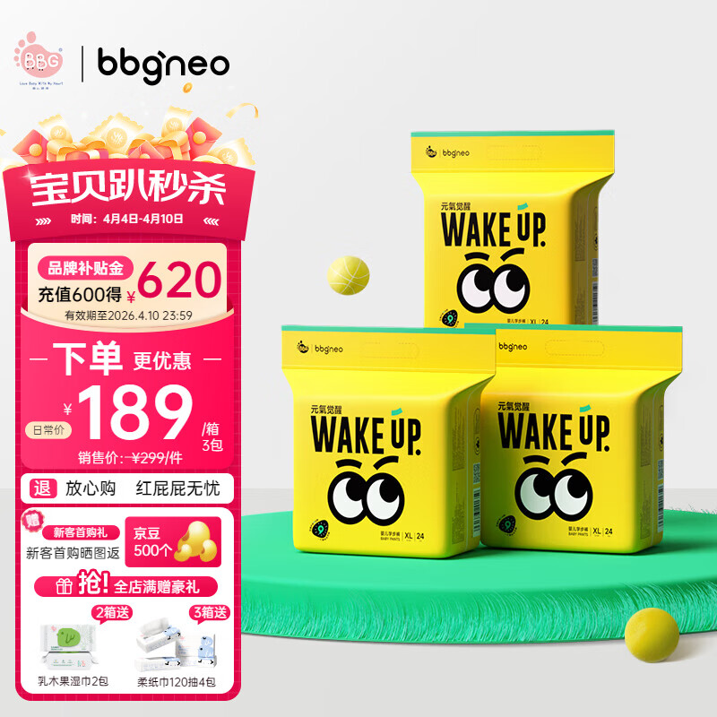 BBG元气觉醒neo系列拉拉裤XL码3包箱装72片(9-15kg)尿不湿成长裤