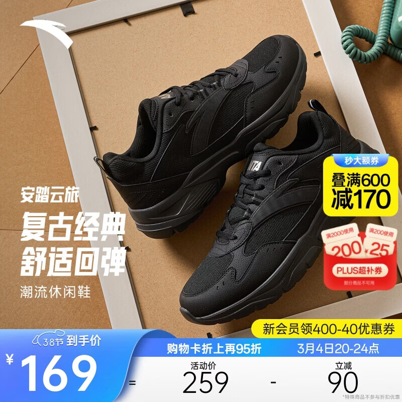 安踏云旅丨休闲鞋男鞋百搭经典春季新款轻便潮流休黑色运动通勤鞋子