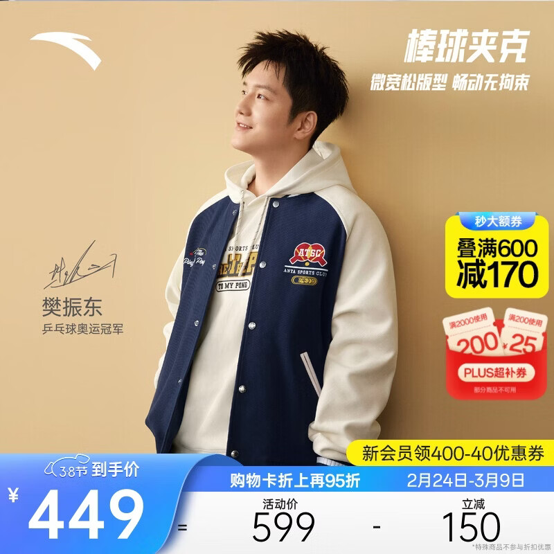 安踏【樊振东同款】美式复古棒球服夹克男休闲外套上衣152618702S