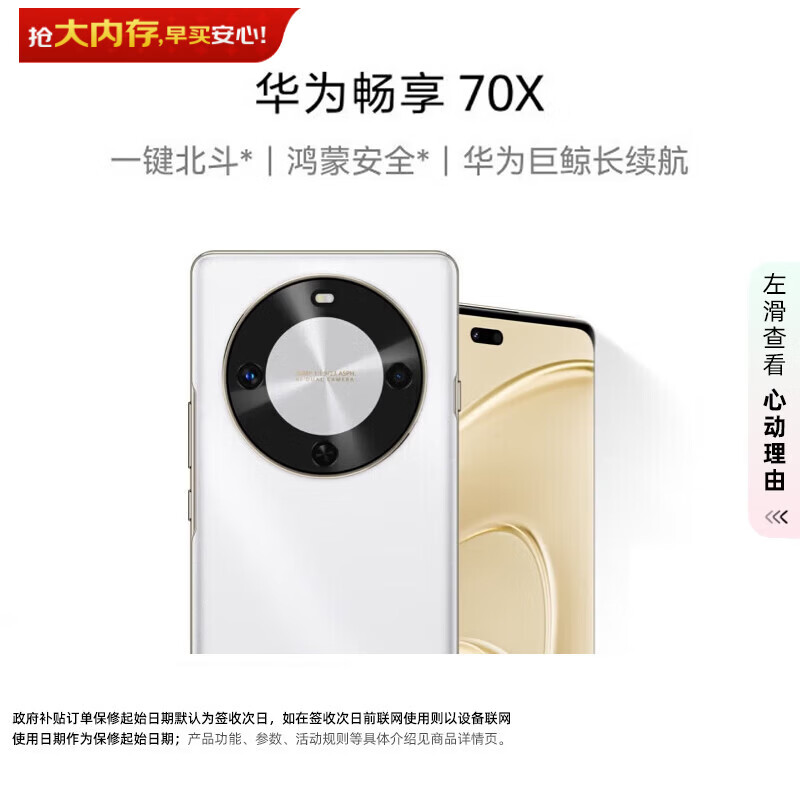 华为(HUAWEI)畅享 70X 256GB 雪域白 手机巨鲸长续航 双曲护眼屏 五星超耐摔 鸿蒙曲面屏手机