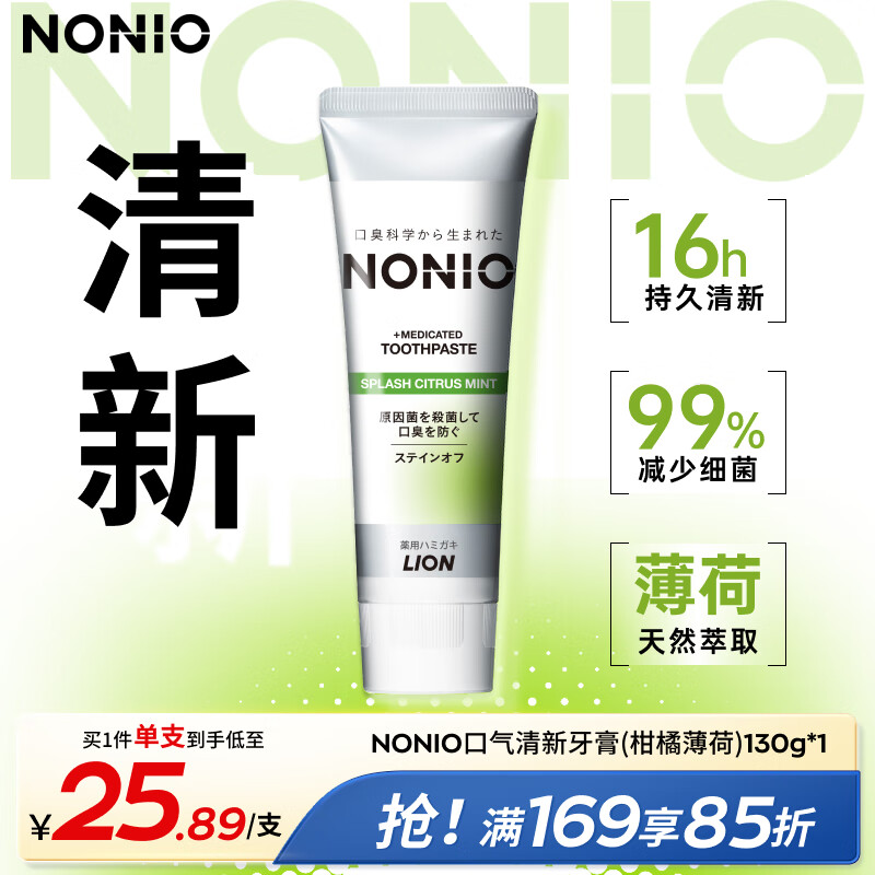 狮王(Lion)NONIO进口清新牙膏柑橘薄荷130g去黄去牙渍亮白护龈含氟