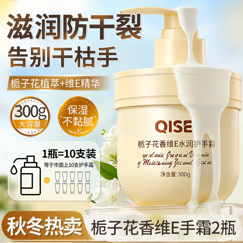 琪瑟栀子花维E护手霜香氛防干裂干燥粗糙补水滋润手膜精油秋冬女男士 300g*2瓶 栀子花维E保湿护手霜