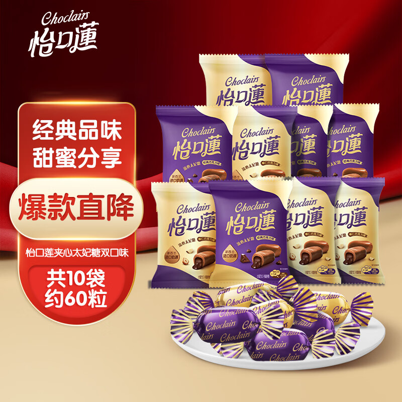 怡口莲 太妃糖 两种巧克力味 33g*10袋 结婚喜糖 糖果休闲零食