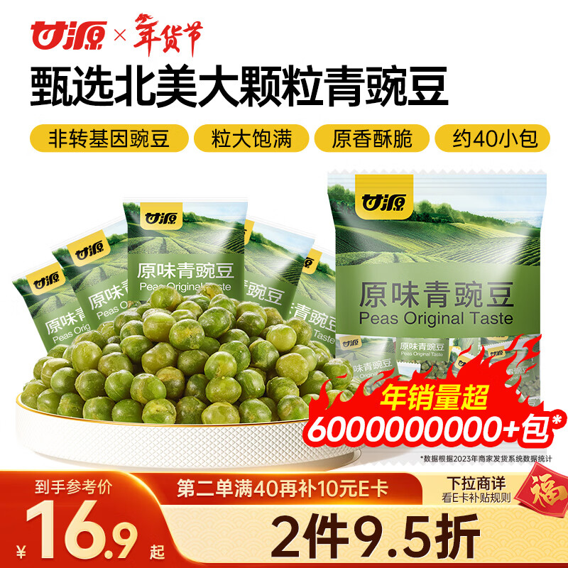 甘源牌原味青豌豆青豆豌豆粒豆子坚果炒货休闲零食小吃独立小包装500g