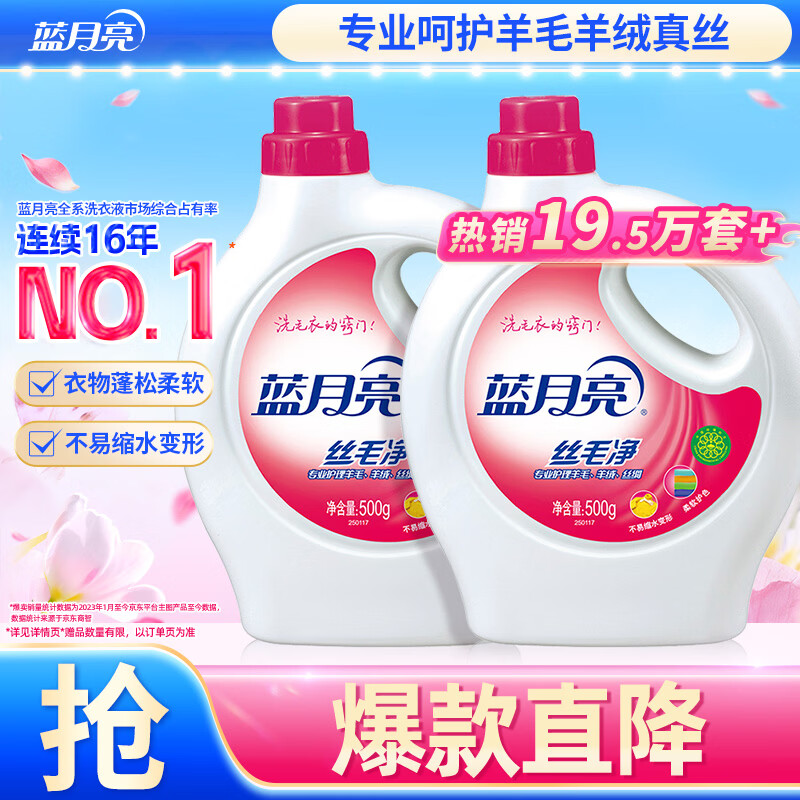 蓝月亮丝毛净淡雅花香500g*2瓶不易缩水变形专业护理羊毛羊绒真丝洗涤剂
