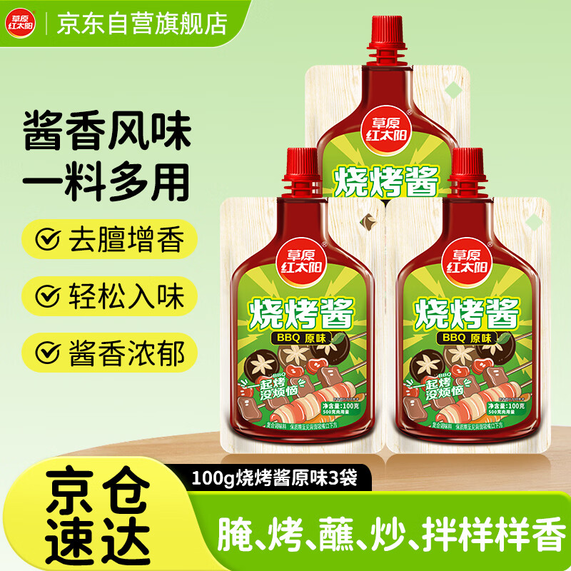 草原红太阳烧烤酱 烤肉酱烧烤料原味100g*3袋 淄博烧烤体验地合作烧烤料
