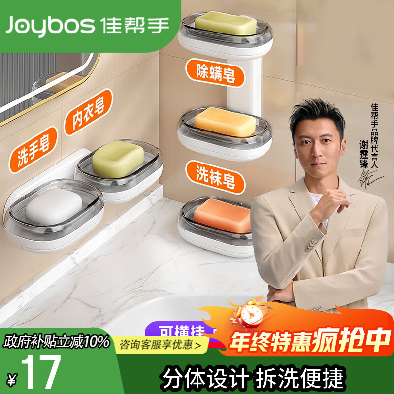 佳帮手肥皂盒壁挂式香皂盒免打孔浴室墙上卫生间可拆卸沥水置物架双层