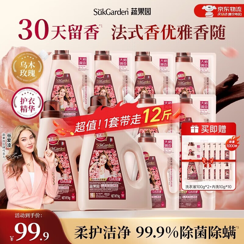 蔬果园乌木玫瑰洗衣液12斤持久留香72小时除菌除螨深层洁净