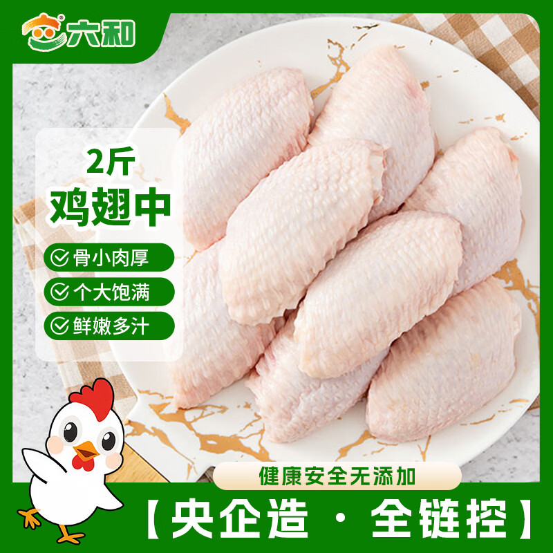 六和鸡翅中 2斤 白羽鸡冷冻鸡翅中生鲜鸡肉鸡中翅炸鸡烧烤