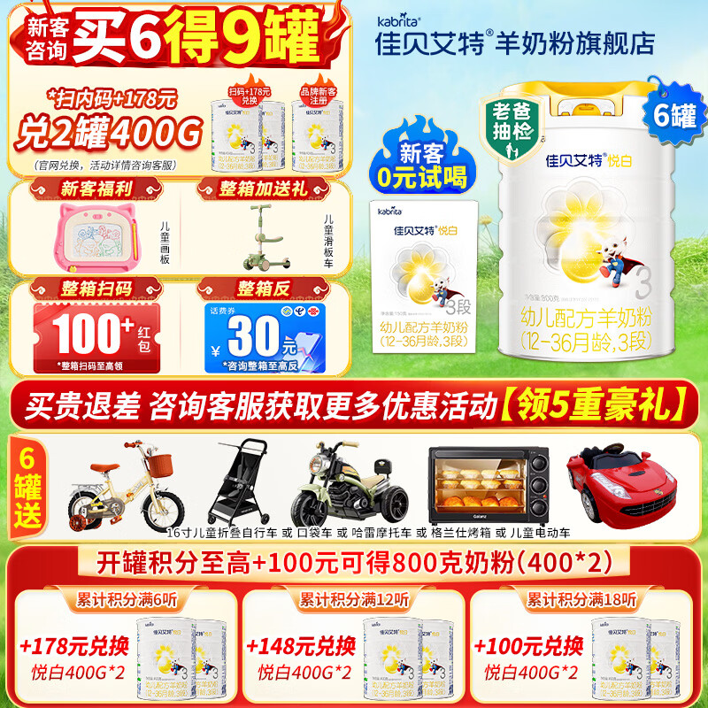 佳贝艾特(Kabrita)悦白婴幼儿配方羊奶粉3段(12-36个月)听装800克(荷兰原装进口 800g*6罐装内码款(新客领150克)