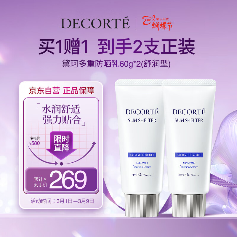 黛珂多重防晒乳60g*2支(舒润型) 防晒隔离霜水润养肤SPF50+ 生日礼物