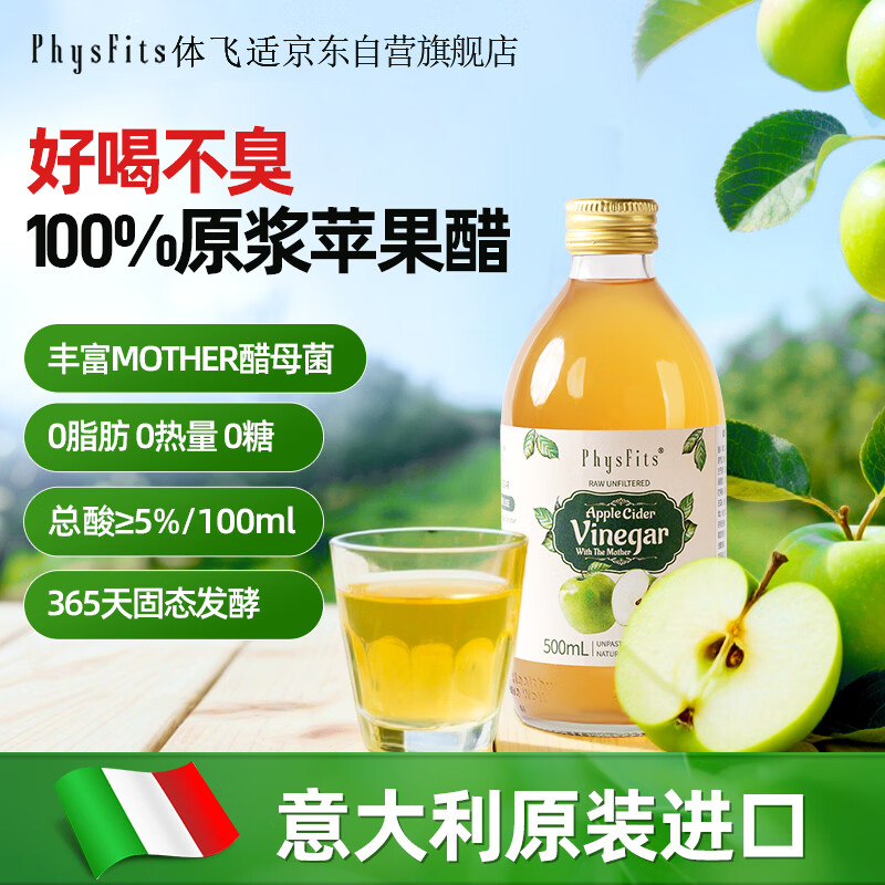 体飞适【配料干净】意大利进口100%原浆苹果醋500ml无糖0卡0脂肪0热量
