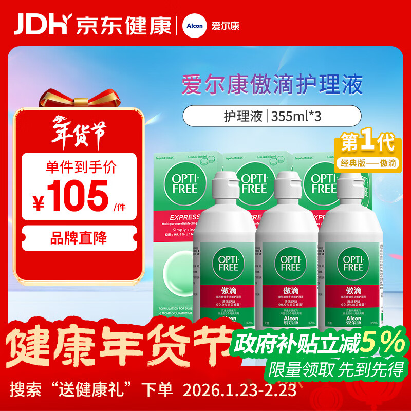 爱尔康 傲滴隐形眼镜多功能护理液355ml*3 清洁杀菌除蛋白进口