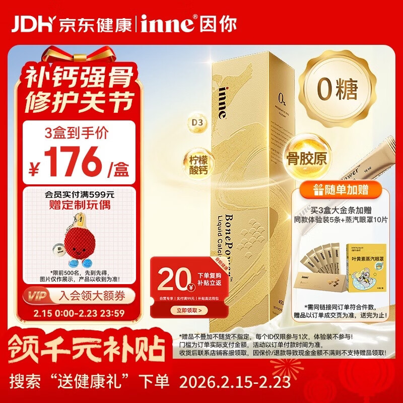 Inne因你大金条液体钙骨胶原成人中老年钙片男女士补钙柠檬酸钙30条