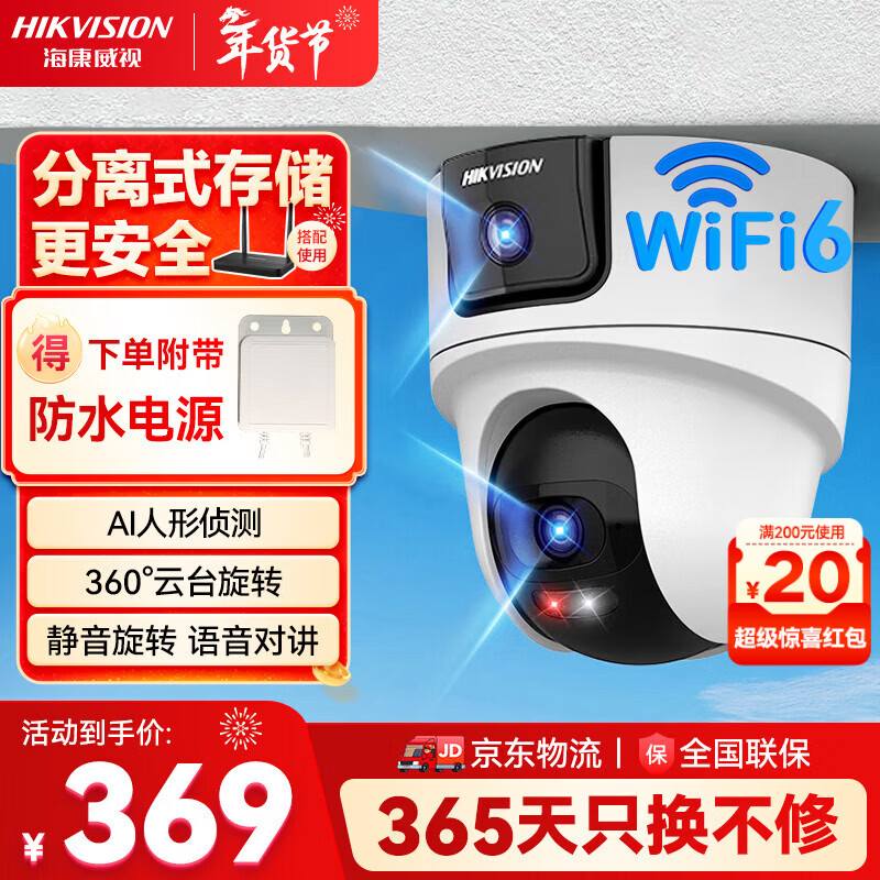 HIKVISION海康威视无线双摄像头家用WiFi云台360度无死角全彩夜视800万手机远程人形侦测球机2Q144MW