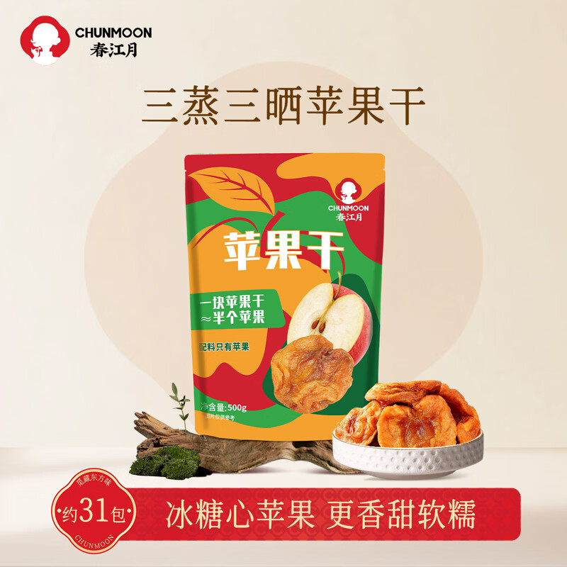 春江月阿克苏苹果干500g无添加儿童零食三蒸三晒无添加独立包装泡水苹果 【500g】冰糖心苹果干约31包/含膳食纤维
