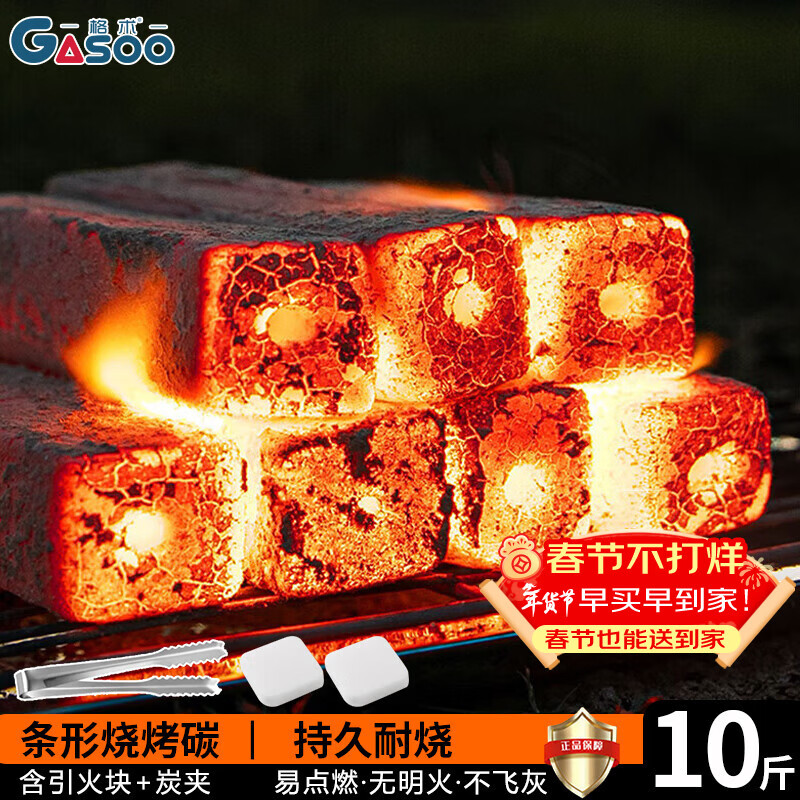 格术烧烤炭 烧烤木炭无烟速燃竹炭 取暖烤火炉围炉煮茶炭火锅木碳10斤