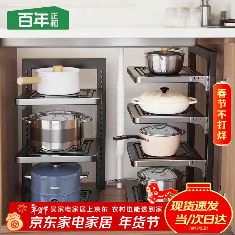 百年正和厨房置物架锅架家用下水槽灶台橱柜内放锅具分层多功能收纳架