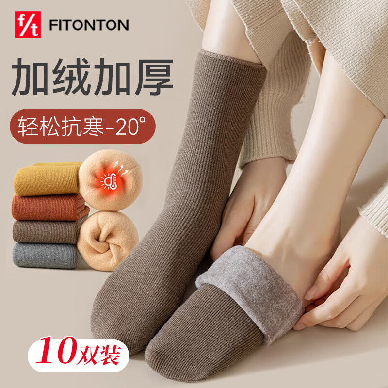 FitonTon10双雪地袜子女中筒冬季加绒加厚东北保暖毛圈袜毛巾雪地袜睡眠袜