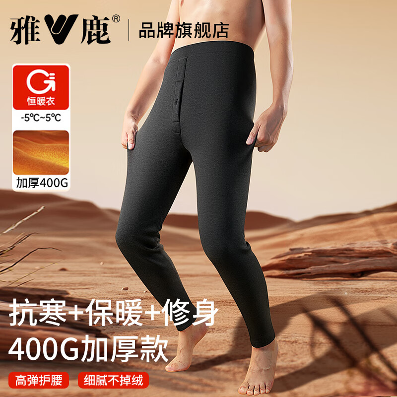 雅鹿男士保暖裤男冬季加绒加厚秋裤男生宽松加肥内穿打底棉裤抗寒睡裤 【黑灰色】-加厚400g 2XL 【建议130-150斤】