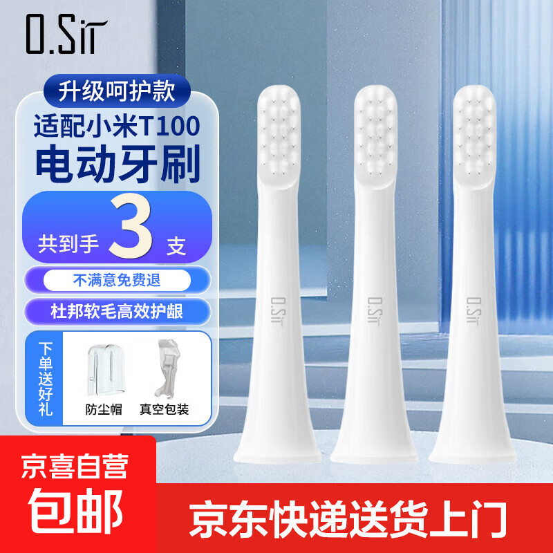 O.Sir适配小米电动牙刷头T100/T200/T300/T500/T700多型号细软刷毛适用米家声波电动牙刷杜邦软毛 【日常清洁型】适配T100通用型 3支