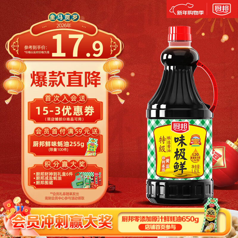 厨邦酱油 味极鲜酱油 生抽【特级黄豆酱油】1.63L 酿造酱油 调味品