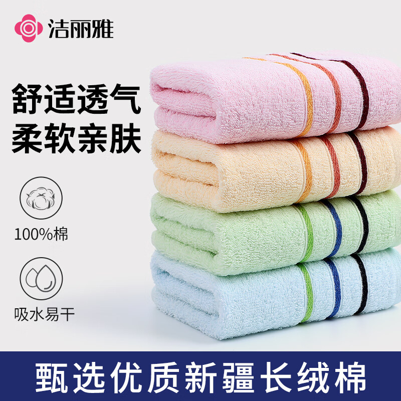 洁丽雅(grace) 4条装 毛巾纯棉洗脸巾四季成人男女吸水不掉毛面巾节日送礼毛巾 彩条缎档(4条装随机色) 4条 80g 吸水纯棉