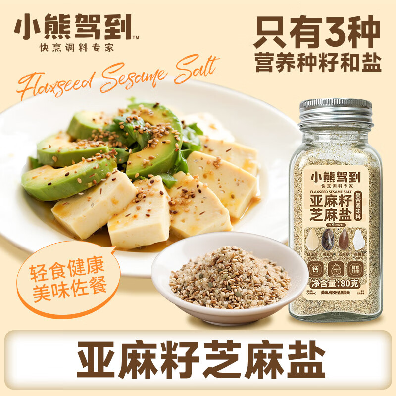 小熊驾到亚麻籽芝麻盐80g 高钙高膳食纤维凉拌菜奇亚籽低钠盐烧烤调味料