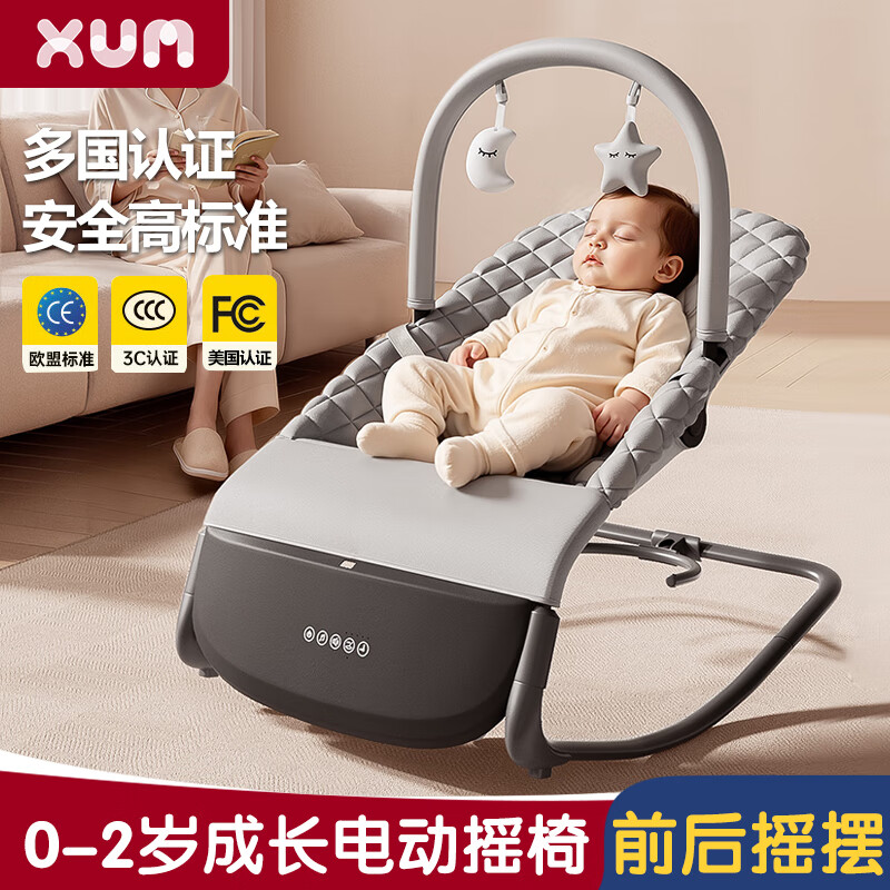 嘻优米婴儿摇摇椅哄娃神器电动摇椅新生儿见面礼宝宝摇篮躺睡摇摇床 灰色【智能哄睡-电动摇椅】+玩具架