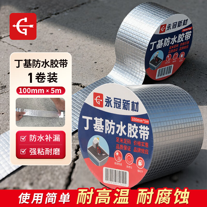 永冠防水丁基胶防水胶带 屋顶防水补漏材料 屋顶防水贴 通用型10cm*5m*1卷
