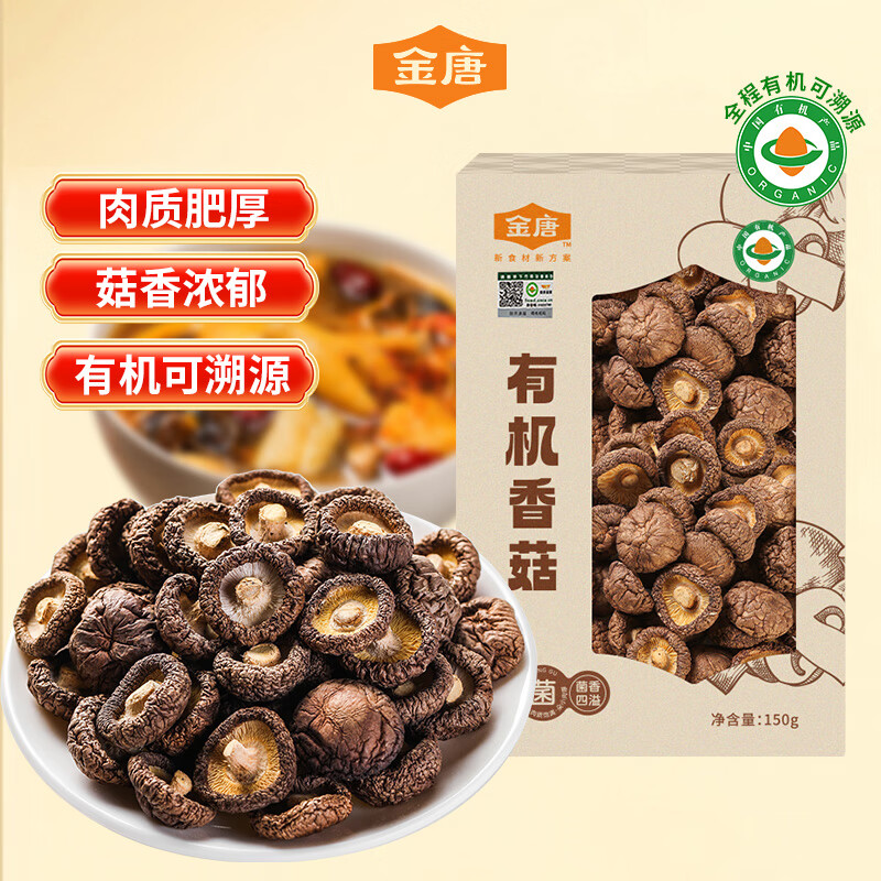 金唐有机香菇150g 厚干香菇 山珍菌菇干货蘑菇干冬菇火锅煲汤年货食材