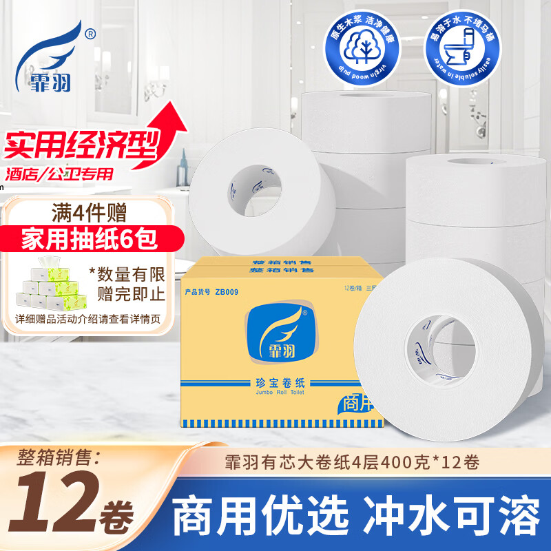 霏羽有芯大卷纸4层400克*12卷商用大盘纸手纸厕纸商务压花整箱ZB009