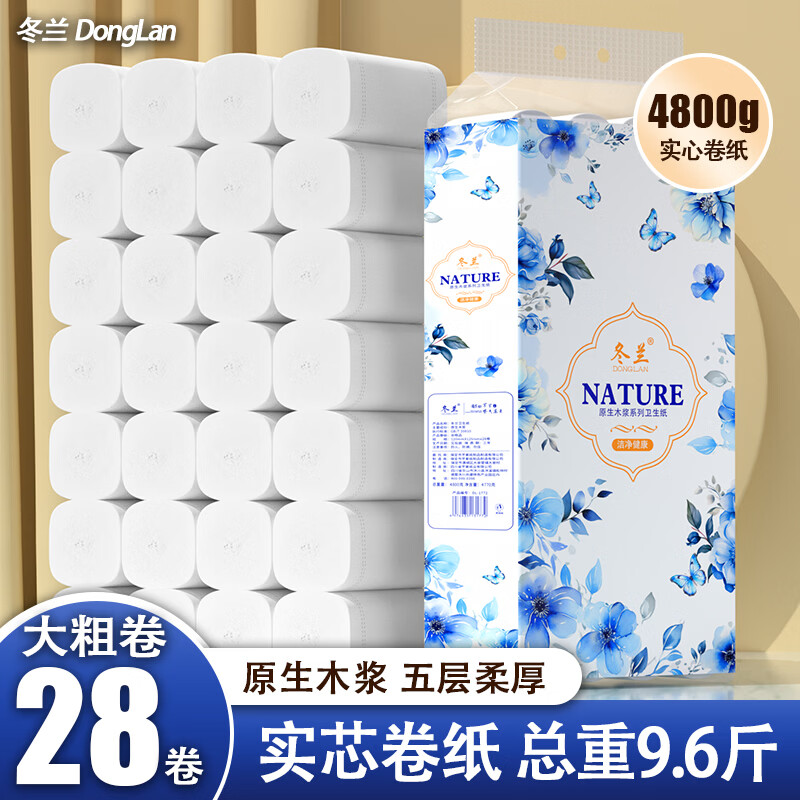 冬兰卫生纸10斤批发卷纸纸巾家庭装无芯卷筒纸实心家用卫生纸厕纸日用 5层 170g/卷*28卷 【9.6斤】批发价冲量