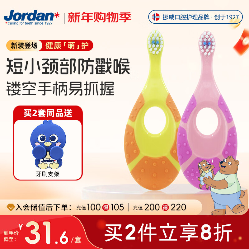 Jordan年货送礼婴幼儿童宝宝细软毛乳牙刷 0-1-3岁以下B款2支