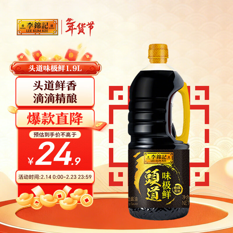 李锦记 头道味极鲜特级酱油1.9L 【特级 头道】炒菜凉拌提鲜 酿造生抽