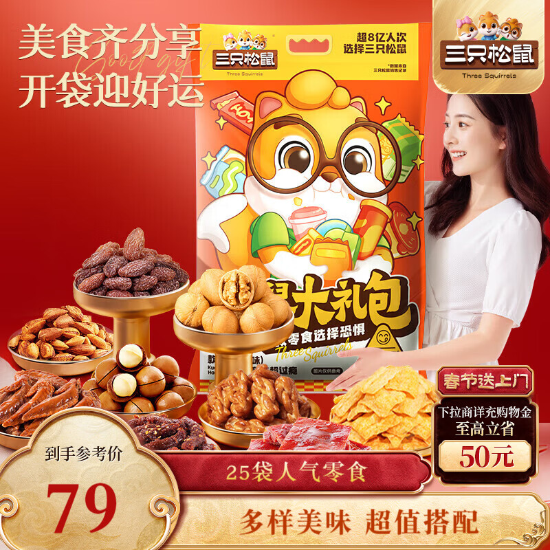 三只松鼠松鼠零食大礼包2120g 坚果果干肉脯辣卤礼物25袋团购新年送礼