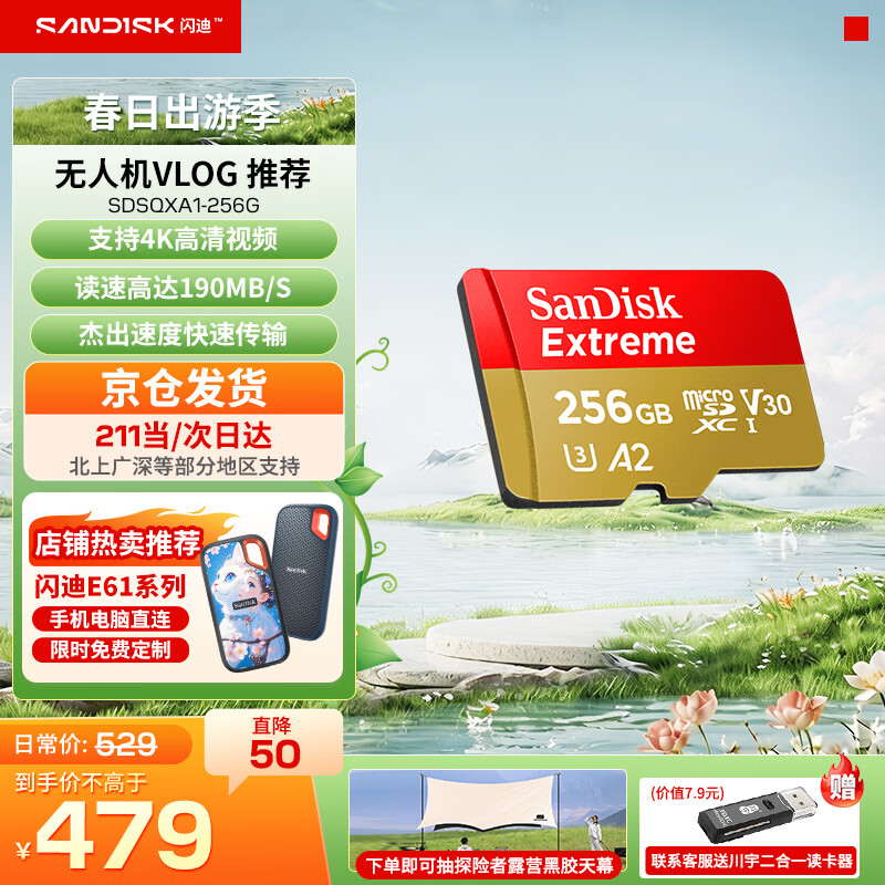 闪迪存储卡行车记录仪内存卡TF卡MicroSD卡无人机运动相机卡 至尊极速 256G【送读卡器】 无人机推荐