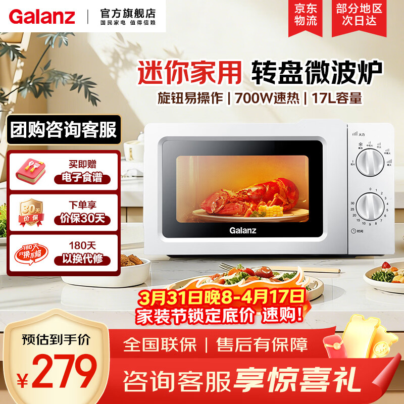 格兰仕(Galanz)微波炉 家用小型迷你 360°转盘加热 简约时尚机械旋钮易操作 V1(W0)