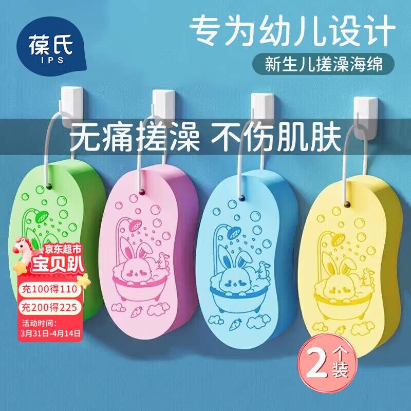 葆氏儿童搓澡洗澡海绵婴儿宝宝沐浴神器新生儿洗头刷幼儿搓澡巾2只装