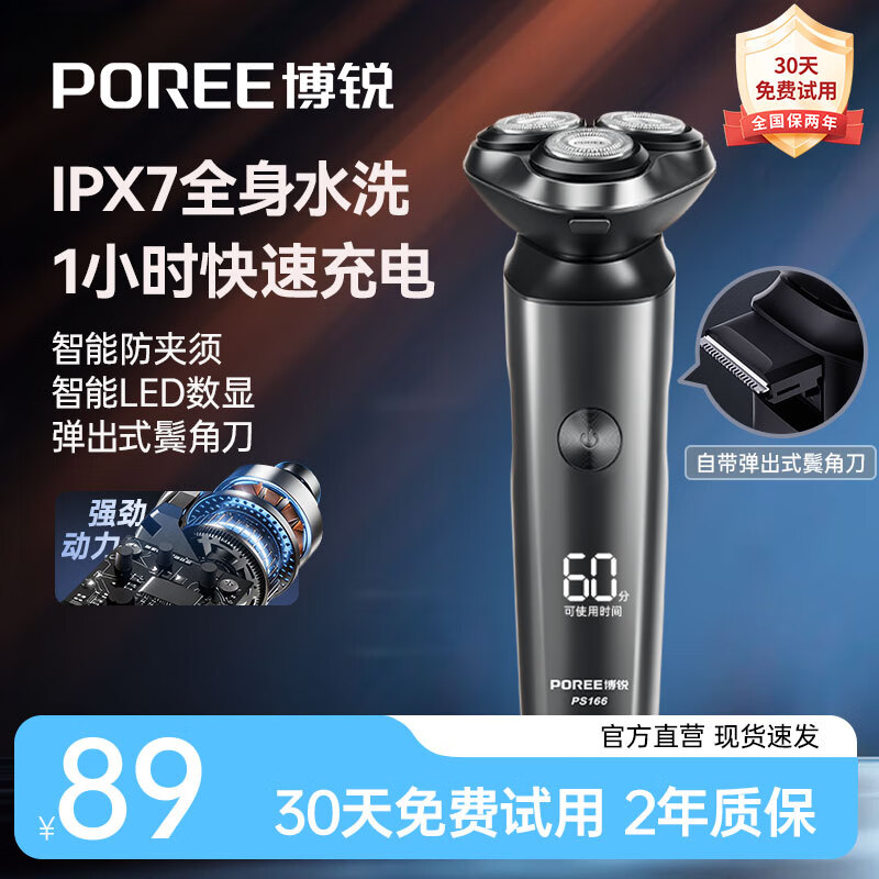 飞科博锐电动剃须刀男士便携刮胡刀旋转式全身水洗车载快充LED数显三头即插即用须刨送男友生日礼物 【热卖爆款】全身水洗 数显PS166