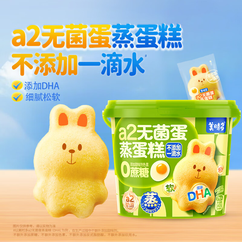 美时多a2奶源无菌蛋蒸蛋糕宝宝零食小兔手撕面包添加dha儿童早餐140g