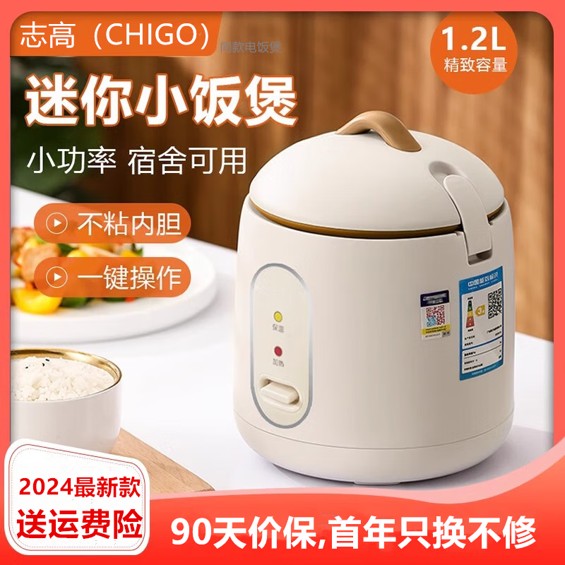 志高电饭煲家用迷你小容量1-2人快速煮饭机械不粘内胆小型电饭锅 米黄色-不沾内胆 1.2L (送杯勺)