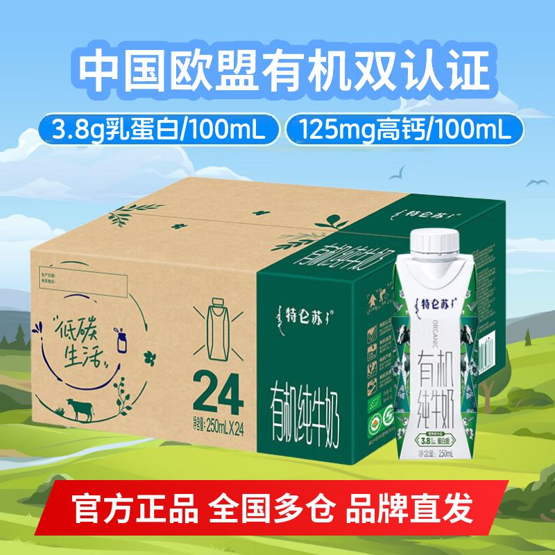 蒙牛特仑苏有机纯牛奶梦幻盖250ml*24盒整箱 原生高钙3.8蛋白质送礼佳 1箱装 10月产