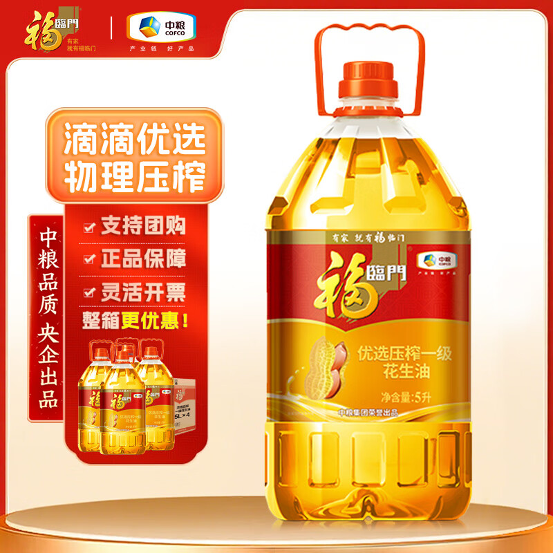 福临门浓香压榨一级花生油食用油 中粮出品家庭烹饪植物油 团购灵活开票 优选压榨一级花生油5L