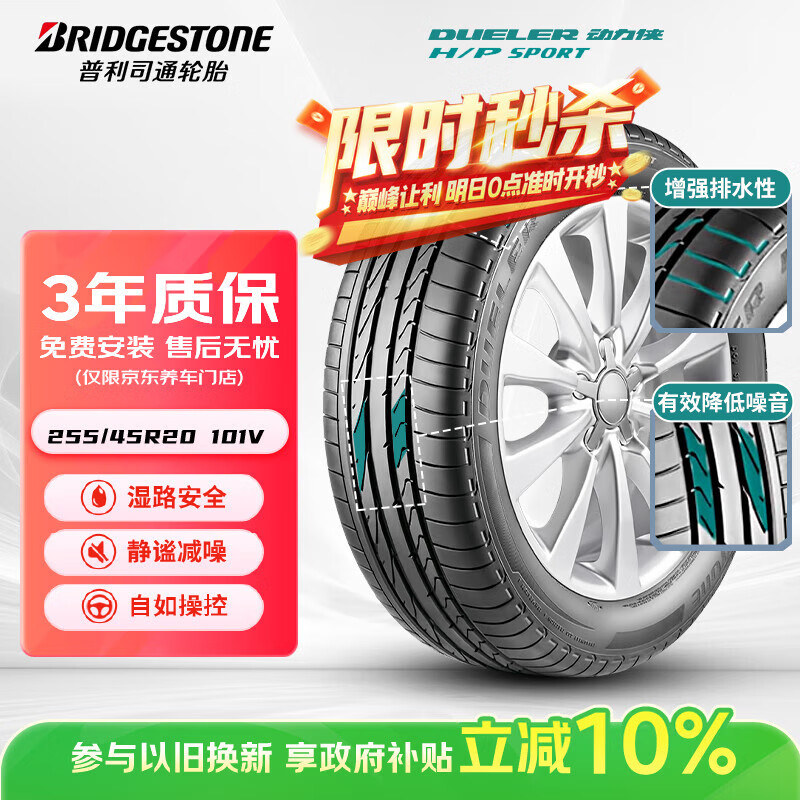 普利司通(Bridgestone)汽车轮胎 255/45R20 101V H/P SPORT 原配哈弗H7/适配特斯拉/Q5