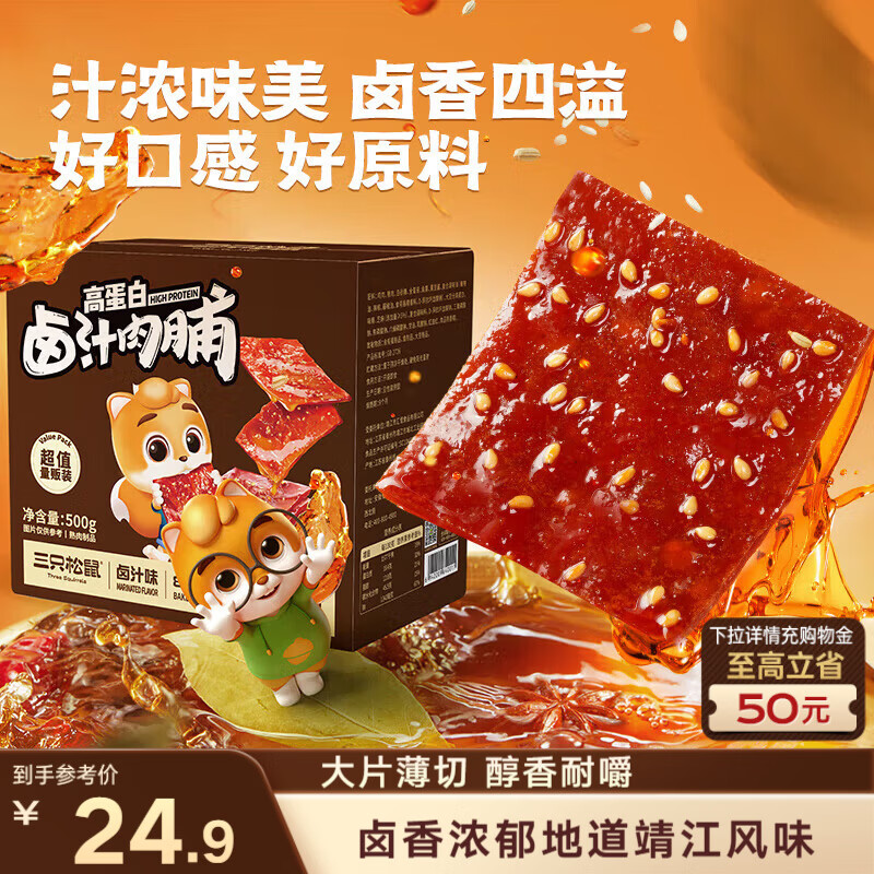 三只松鼠卤汁肉脯500g卤香味箱装休闲零食高蛋白猪肉脯即食解馋年货送礼