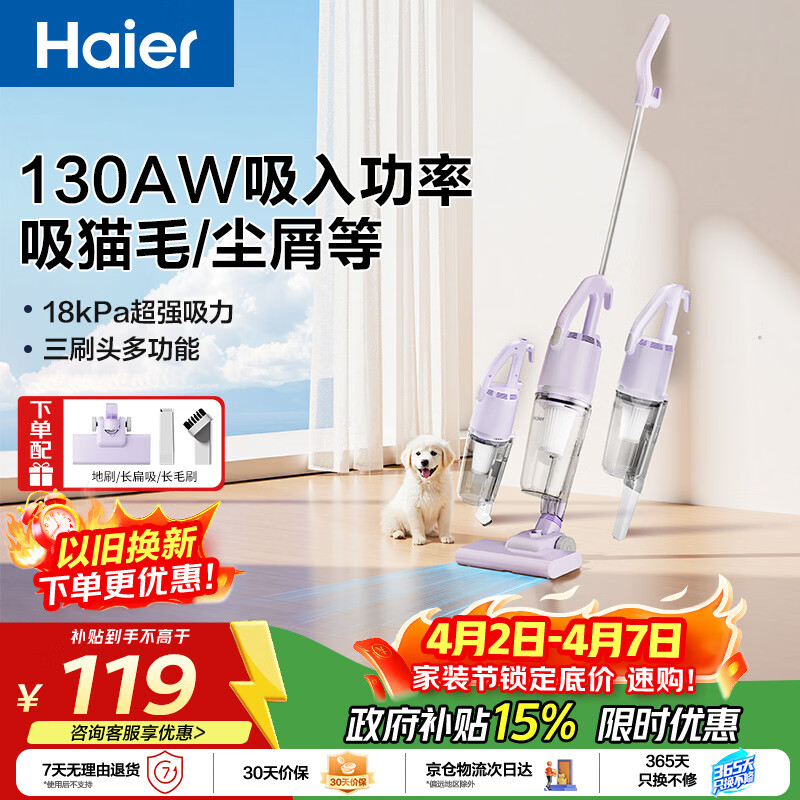 海尔(Haier)吸尘器家用 有线手持推杆二合一 大功率大吸力 轻量车辆清洁 宠物毛发清洁HSC-S802A