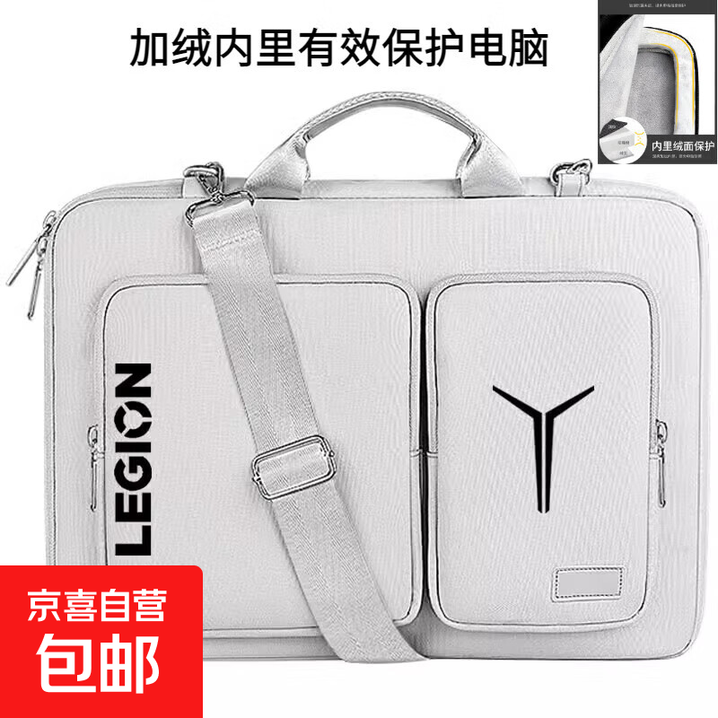 适用于联想拯救者R9000P笔记本电脑包手提男女单肩包防震游戏本包 灰白黑标 16英寸
