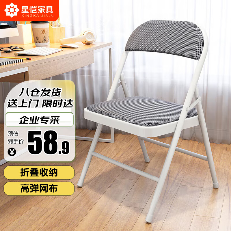 星恺椅子折叠椅凳子电脑椅子靠背餐椅学习椅办公椅 XK1022灰色网布